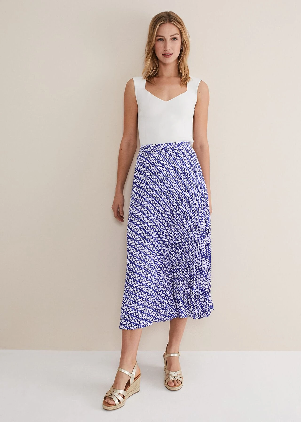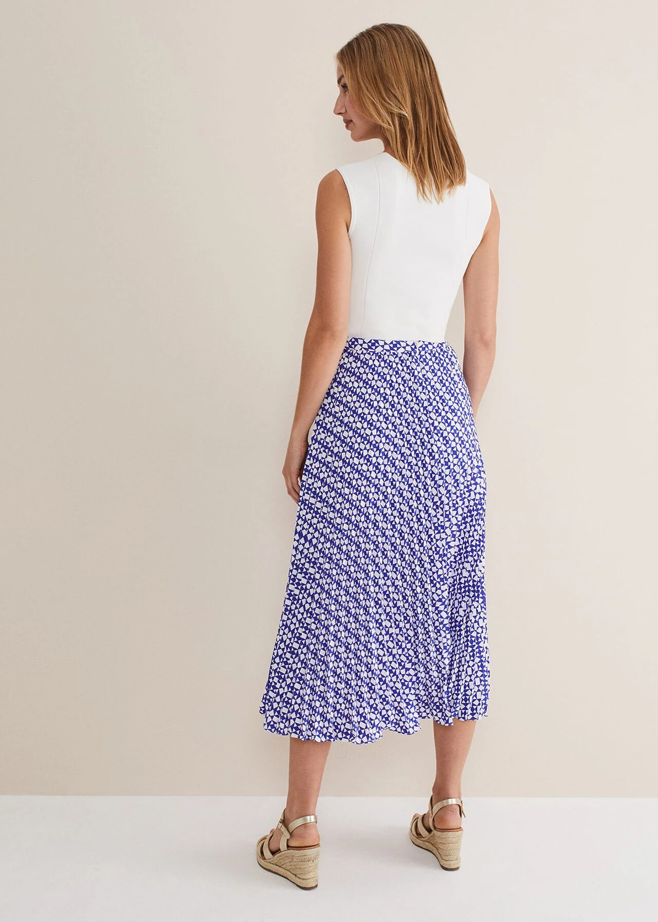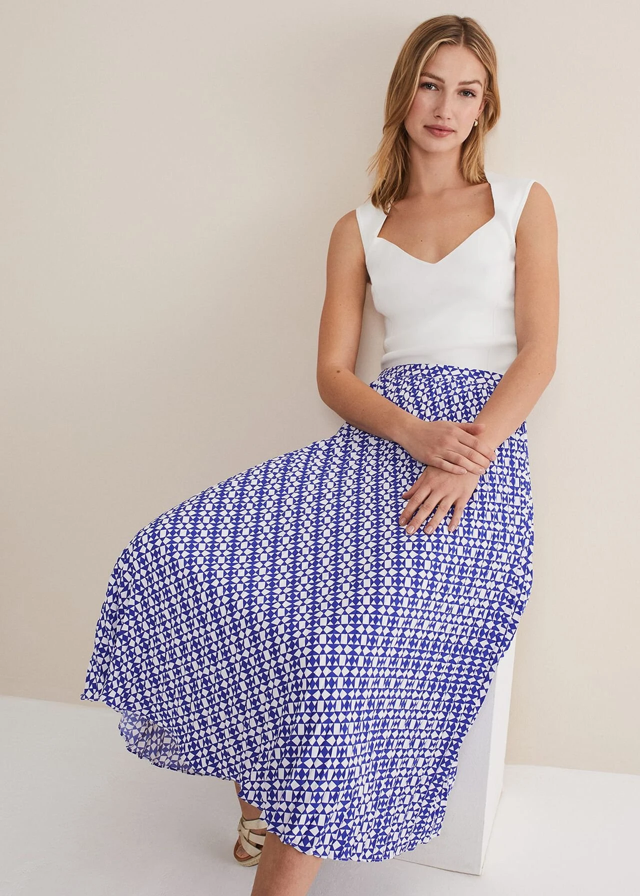 Elmina Geo Pleated Midi Skirt